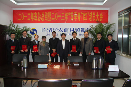 2013年1月3日,临清沪农商村镇银行召开“2012年总结表彰暨2013年首季开门红动员大会”,山东分部管国建主任出席会议并作了重要讲话,会议由曹洪亮董事长主持。